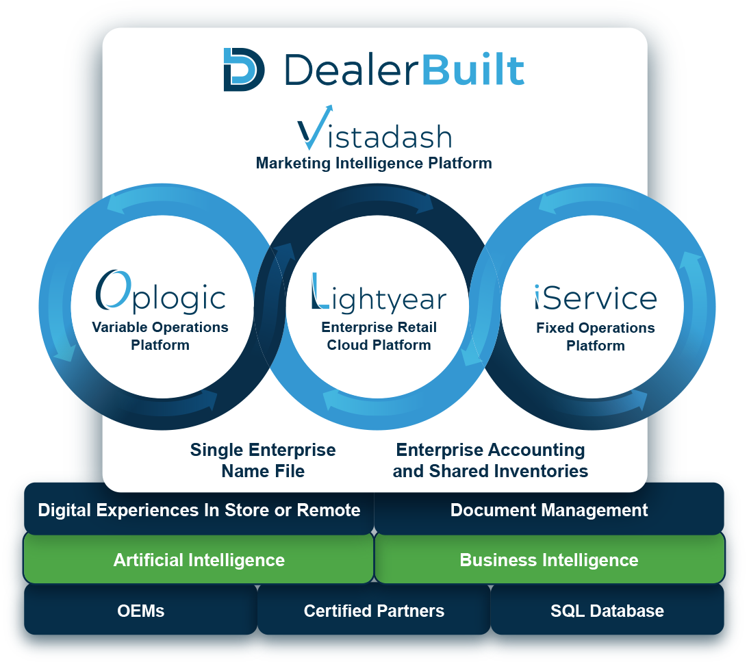 DealerBuilt offers a robust portfolio of enterprise solutions for DMS, CRM, desking, service lane tools, and marketing analytics. Finally, a platform that empowers you to run your business your way.